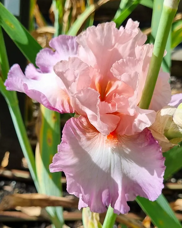 ‘Blowing Kisses’ (Keith Keppel, R. 2006). Seedling# 00-198A. TB, height 40″ (102 cm). Midseason to late bloom. Standards and style arms light pink (M&P 1-DE-7); falls phlox pink (41-E-3/4) paling to lilac white (42-C-4/5) center; beards white tipped carnelian red (2-E-11). ‘Mild Manner’ X ‘My Ginny’. Keppel 2007.