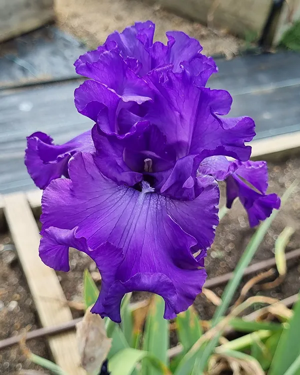 ‘Hey True Blue’ (Graeme Grosvenor, R. 2010). Seedling# D53-04-1. TB, 36″ (92 cm), Midseason bloom. Standards, style arms and falls sky blue; beards blue white. ‘Yaquina Blue’ X ‘Best Value’. Rainbow Ridge 2010/11.
